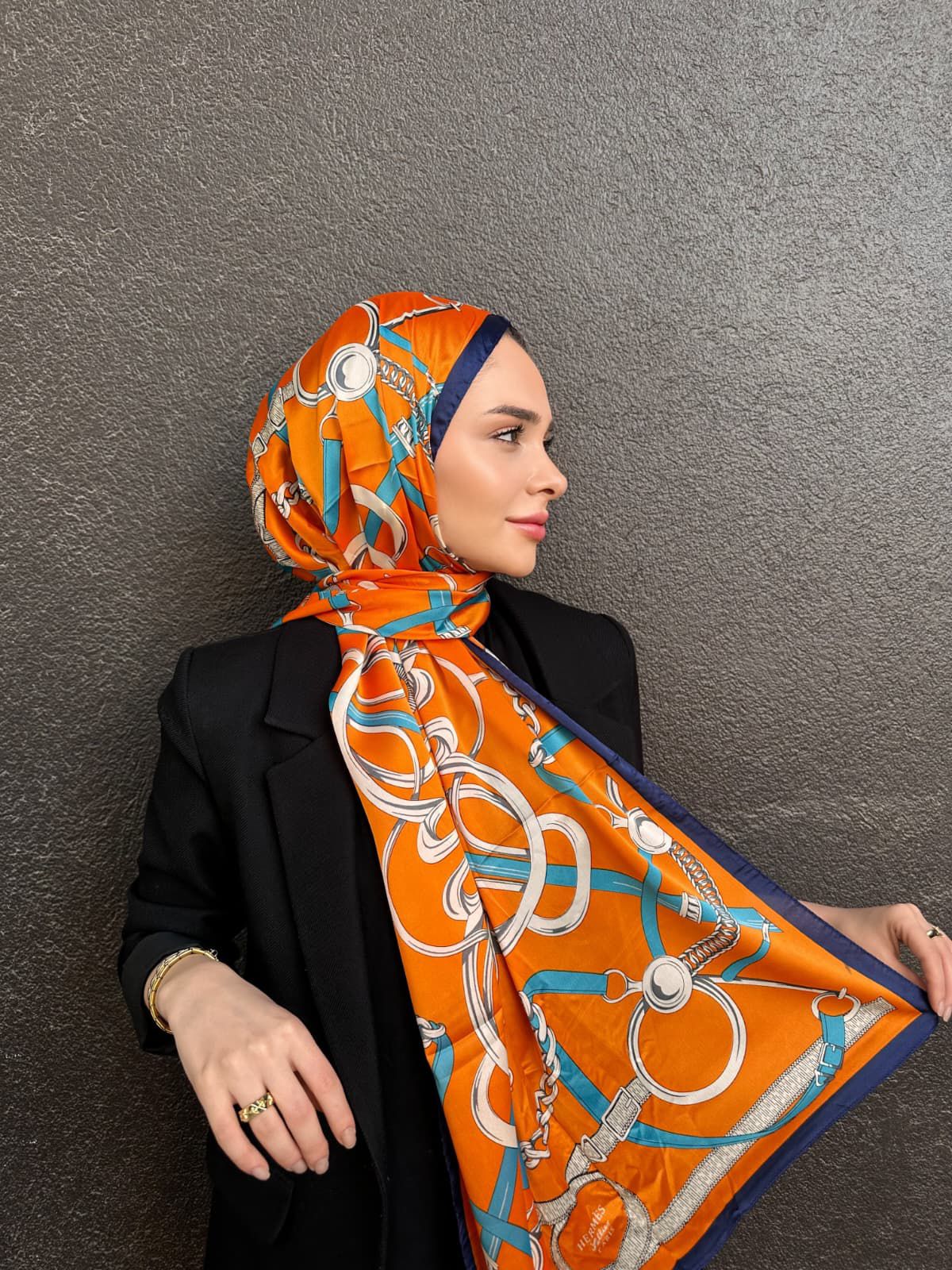 Monogram Desenli Saten Şal Koleksiyonu – Çoklu Renk Seçeneği Monogram Desenli Saten Şal Koleksiyonu – Çoklu Renk Seçeneği